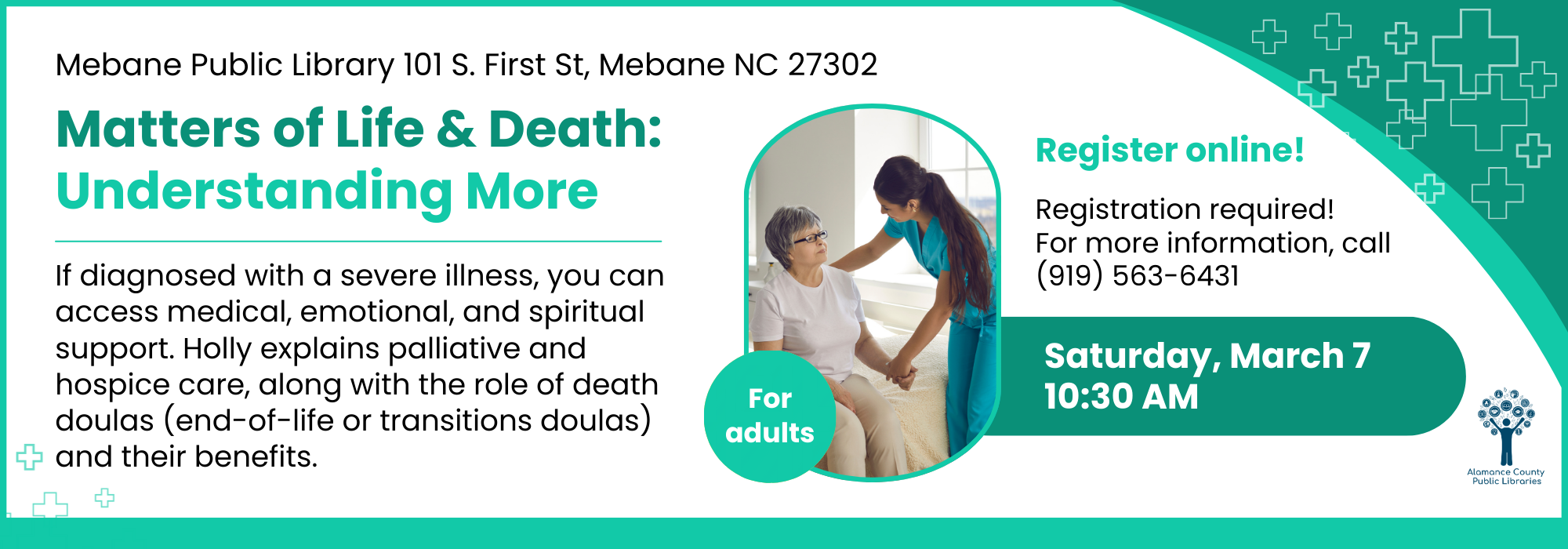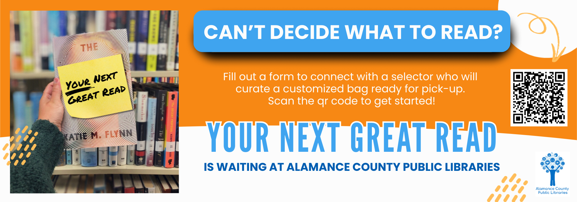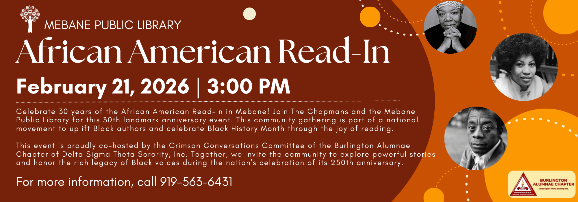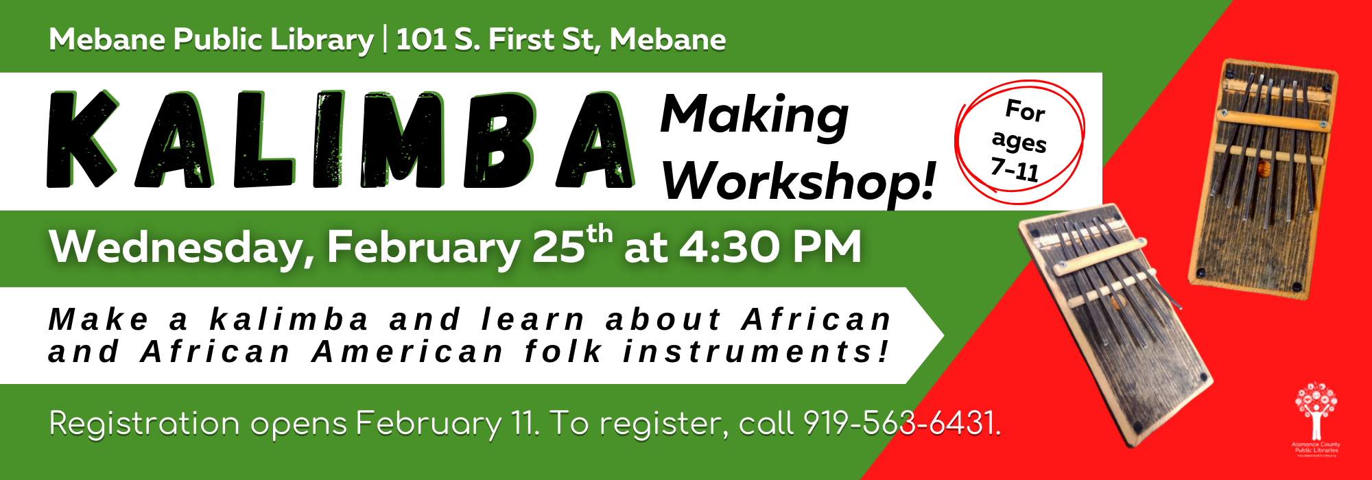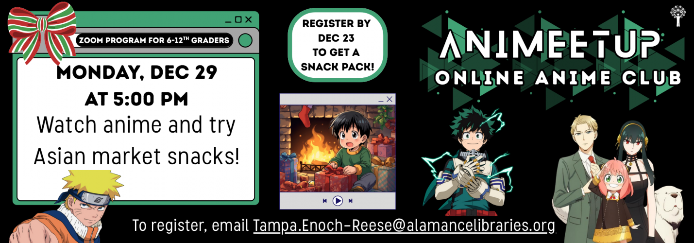 Phone: 336-229-3588 ext. 16109 or ask for Outreach | e-mail: outreach@alamancelibraries.org