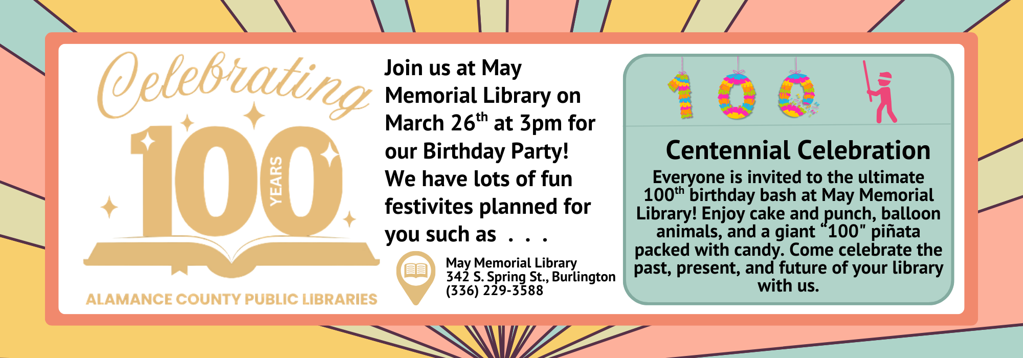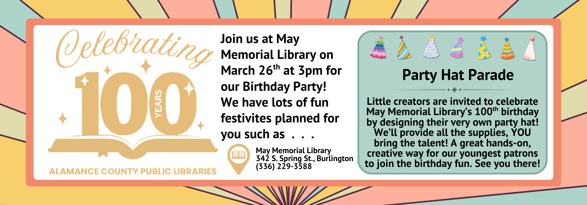 May Memorial Library 342 South Spring Street, Burlington, NC 27215 | Telephone: 336-229-3588