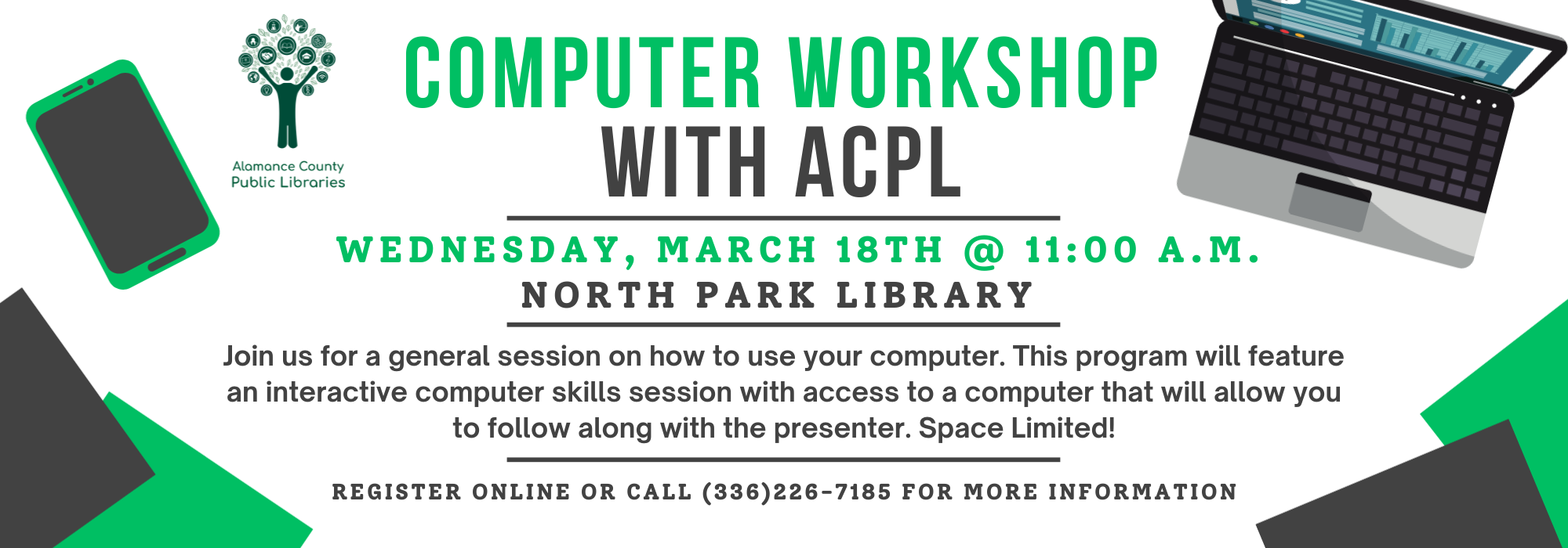Phone: 336-229-3588 ext. 16109 or ask for Outreach | e-mail: outreach@alamancelibraries.org