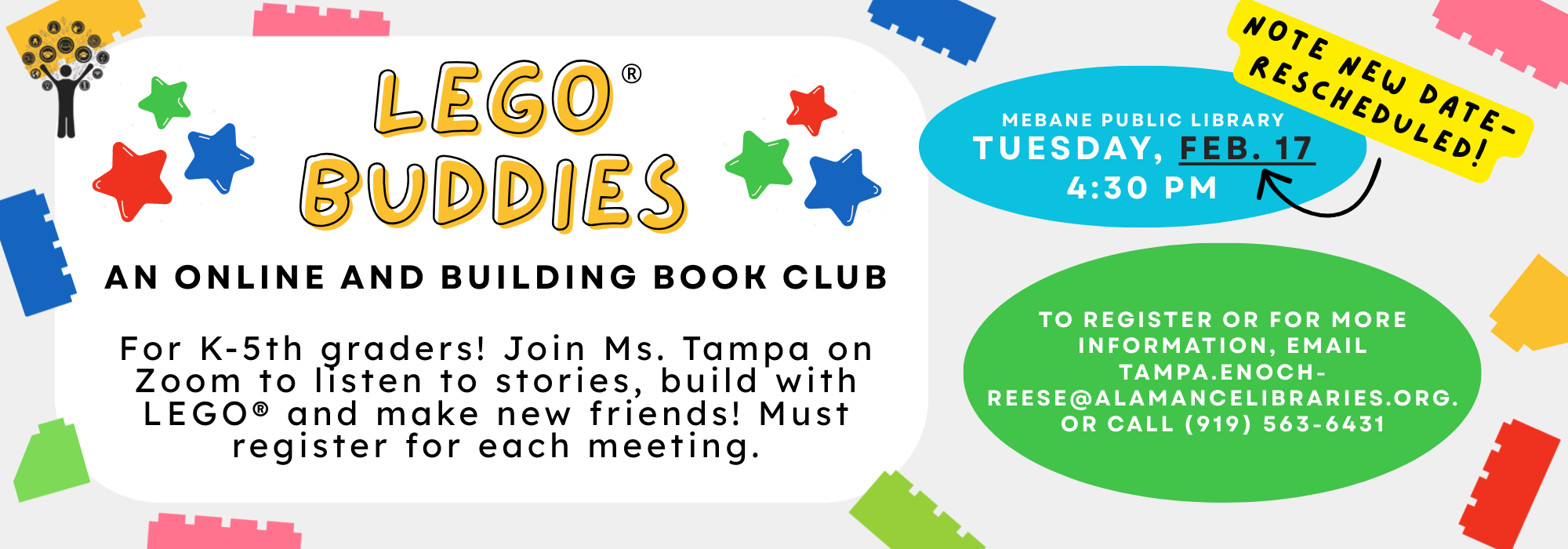 Phone: 336-229-3588 ext. 16109 or ask for Outreach | e-mail: outreach@alamancelibraries.org