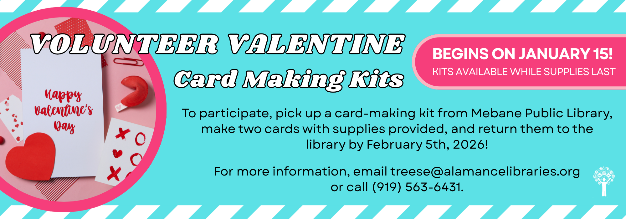 Phone: 336-229-3588 ext. 16109 or ask for Outreach | e-mail: outreach@alamancelibraries.org