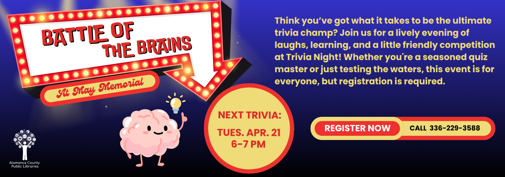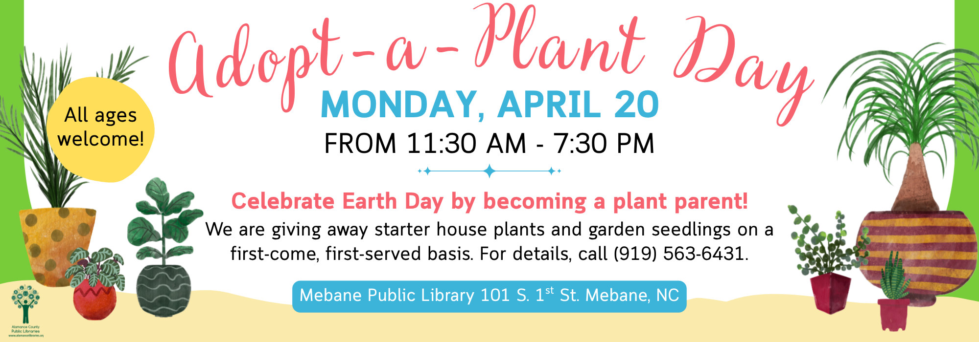 Phone: 336-229-3588 ext. 16109 or ask for Outreach | e-mail: outreach@alamancelibraries.org