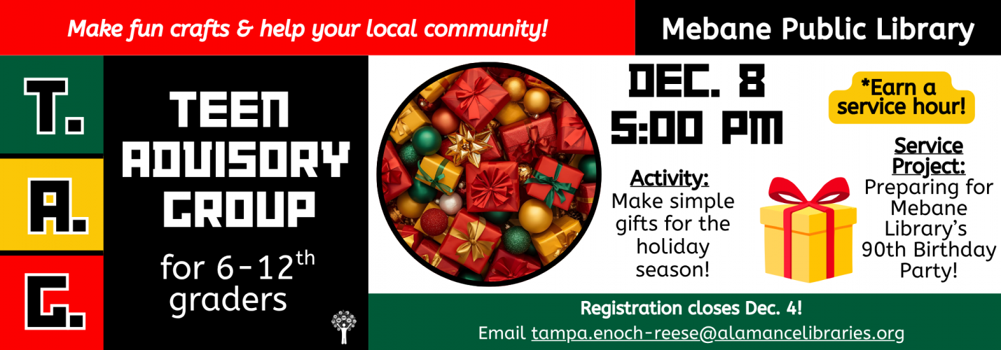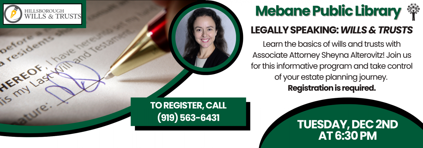 Mebane Public Library 101 South First Street, Mebane, NC 27302 | Telephone: 919-563-6431
